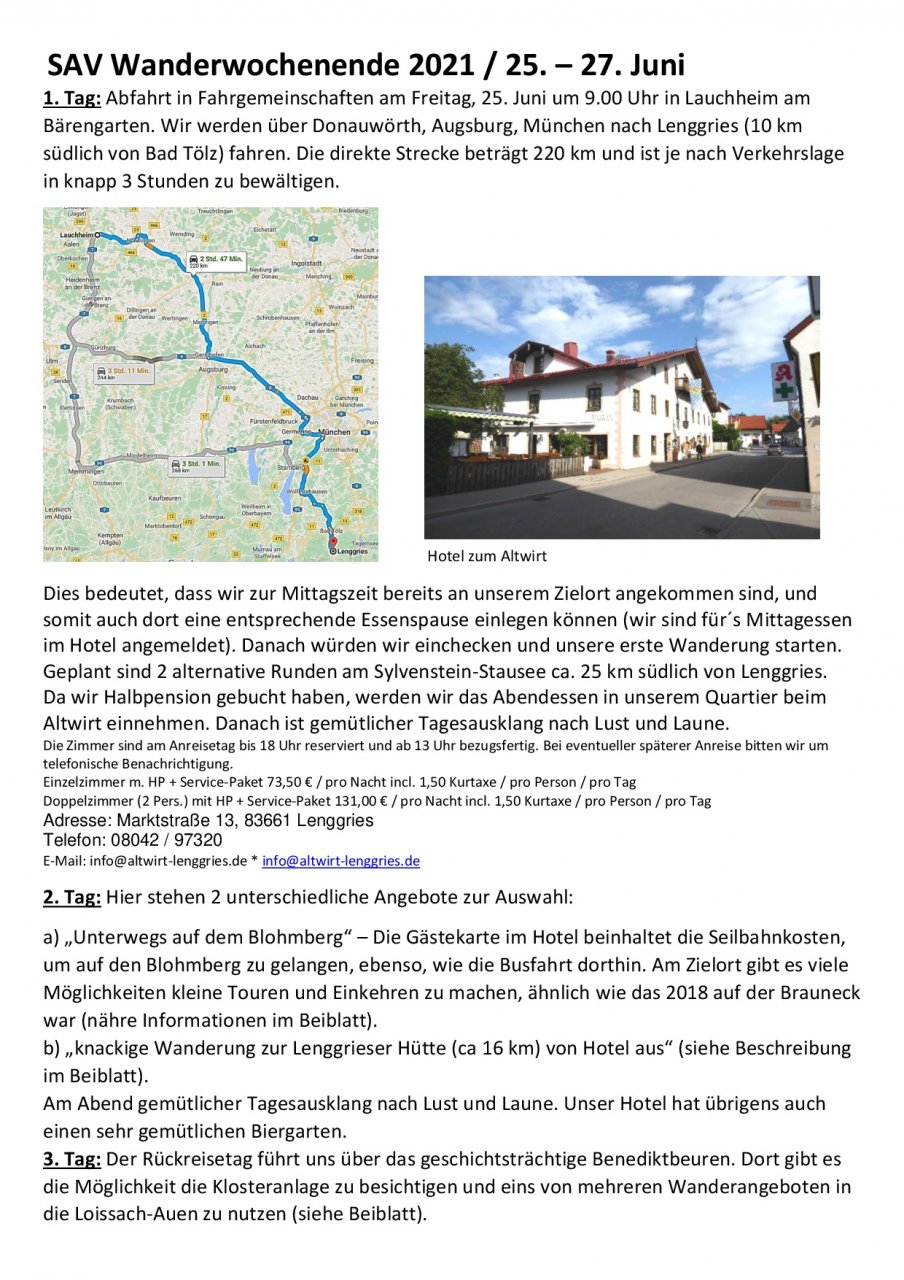 Aktivitäten im Wanderjahr