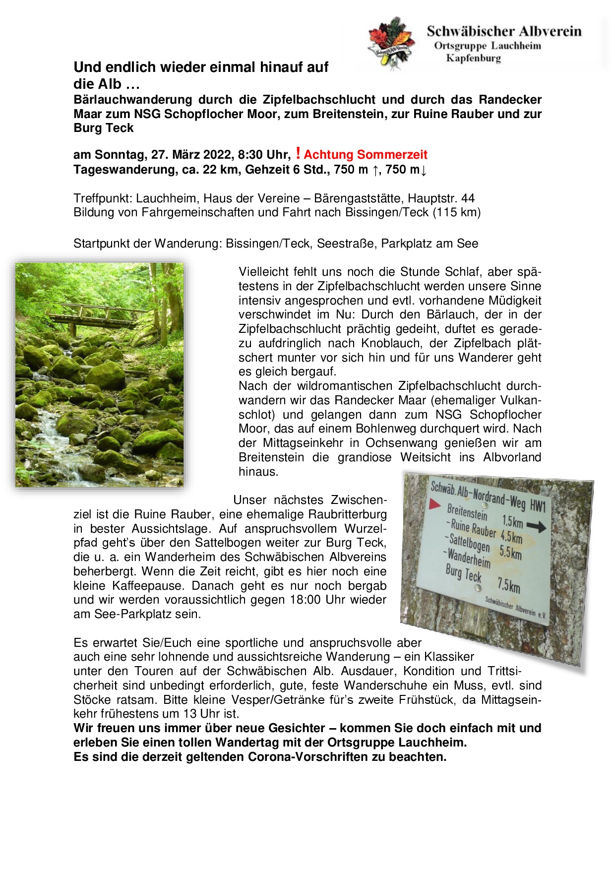 ärlauchwanderung in der Zipfelbachschlucht