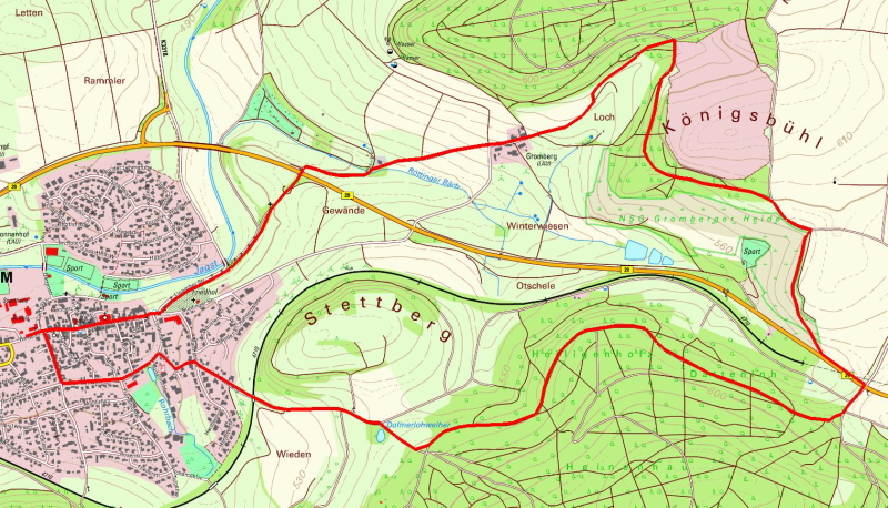 Wir starten am Bärengarten in Lauchheim. Über die Hauptstraße geht es stadtauswärts vorbei an der Kalvarienkapelle bis nach Gromberg. Vor dem Tanklager umwandern wir den Königsbühl. Weiter geht es Richtung Süden über die Heide. Beim Bildwasen überqueren wir die B 29 und folgen dem Waldweg bis zum Dormerlohweiher. Von hier geht es wieder zurück nach Lauchheim und damit zum Ausgangspunkt unserer WanderungWir starten am Bärengarten in Lauchheim. Über die Hauptstraße geht es stadtauswärts vorbei an der Kalvarienkapelle bis nach Gromberg. Vor dem Tanklager umwandern wir den Königsbühl. Weiter geht es Richtung Süden über die Heide. Beim Bildwasen überqueren wir die B 29 und folgen dem Waldweg bis zum Dormerlohweiher. Von hier geht es wieder zurück nach Lauchheim und damit zum Ausgangspunkt unserer Wanderung