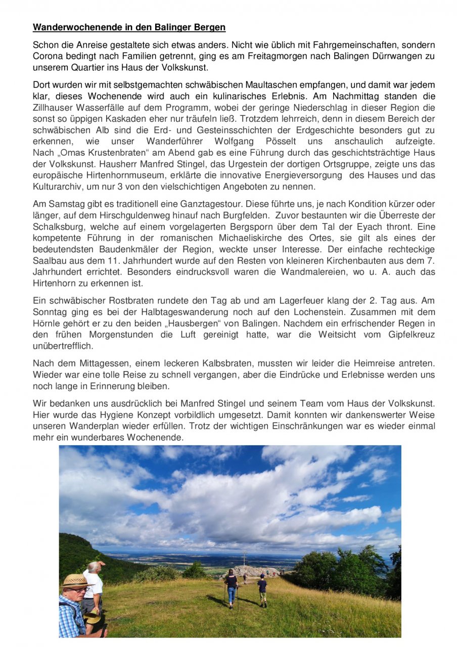 Aktivitäten im Wanderjahr